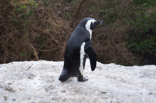 In Simons Town futterten wir Fish’n Chips, was ein Fehler war. Also das Essen war extrem lecker, aber die Zeit fehlte uns dann in Boulder’s Bay. Die Sonne versteckte sich hinter dunklen Wolken und schon bald fing es an, heftig zu regnen (und sollte bis zum Abend nicht mehr aufhören). Trotzdem wollten wir uns die Pinguin Kolonie unbedingt sehen. Die Pinguine sind klein, laut und riechen leicht fischig.