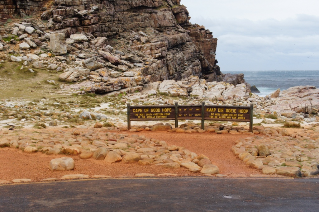 Umdrehen oder weiterfahren stand nicht wirklich zur Diskussion, wir wollten bis zum Kap der Guten Hoffnung kommen! Am Eingang des Nationalparks sah uns eine zierliche junge Frau mitleidig an: Sie werden nicht viel sehen … Wollen Sie wirklich durch dieses Naturreservat fahren? Wir wollten! Am Kap wehte der Wind nicht gerade hoffnungsvoll, jedoch regnete es deutlich weniger. Die Vegetation ist einzigartig, aber besonders beeindruckend war das Gefühl, am Rande eines Kontinents zu stehen.