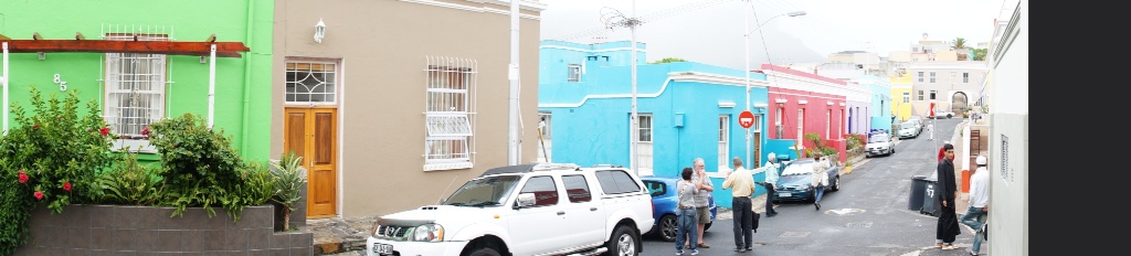 Der Höhepunkt der Tour für uns war der Spaziergang durch das Bo Kaap Viertel. Dies ist das Siedlungsgebiet der Kapmalayen, die aber eben nicht aus Malaysia, sondern aus dem östl. Afrika, Indien und Indonesien stammen und die Nachfahren der ehem. Sklaven sind. Das besondere an diesem Viertel ist, dass es muslimisch und sehr bunt ist. Es wurde gerade zum Gebet gerufen und die Männer gingen in weissen Gewändern oder zumindest weissen Kappen in eine der vielen kleinen Moscheen. Die Häuser im Viertel sind quirlig bunt: