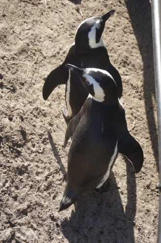 Der Küstenstrasse weiter in Richtung Gordons Bay zu folgen war sehr lohnenswert. Unterwegs boten sich spektakuläre Blicke auf die schroff Richtung Atlantik abfallenden Berge und den Ozean, der immer noch mit voller Wucht gegen diese rollte. Die nachmittägliche Sonne tauchte alles noch in ein wunderbares Licht. Nicht zu vergessen ein kurzer Stopp bei einer Pinguin-Kolonie. Die Vögel sind so schwerfällig und tapsig an Land und so flink und elegant, sobald sie sich im Wasser bewegen. Wir hätten ihnen stundenlang zuschauen können!