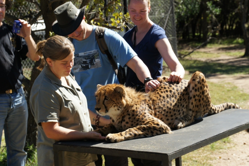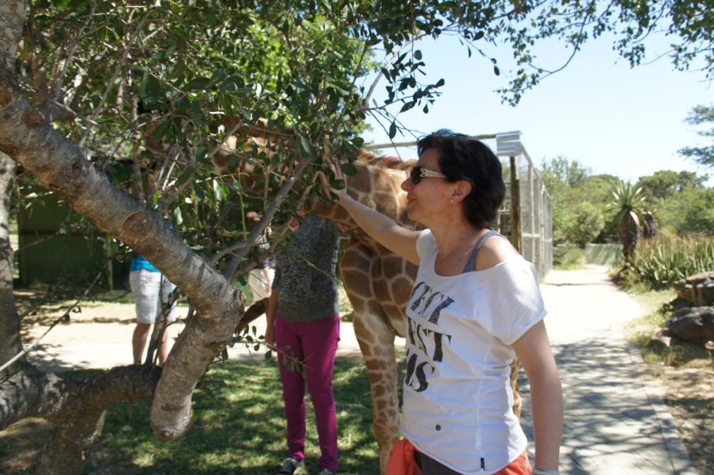 Das Highlight war natürlich, dass wir die Vögel auf unseren Armen füttern konnten und den Geparden streicheln durften. Aber absolute Spitze war die 4 Monate alte Giraffe, die vollkommen allein über das Areal lief und sich von uns den Hals kraulen lies.