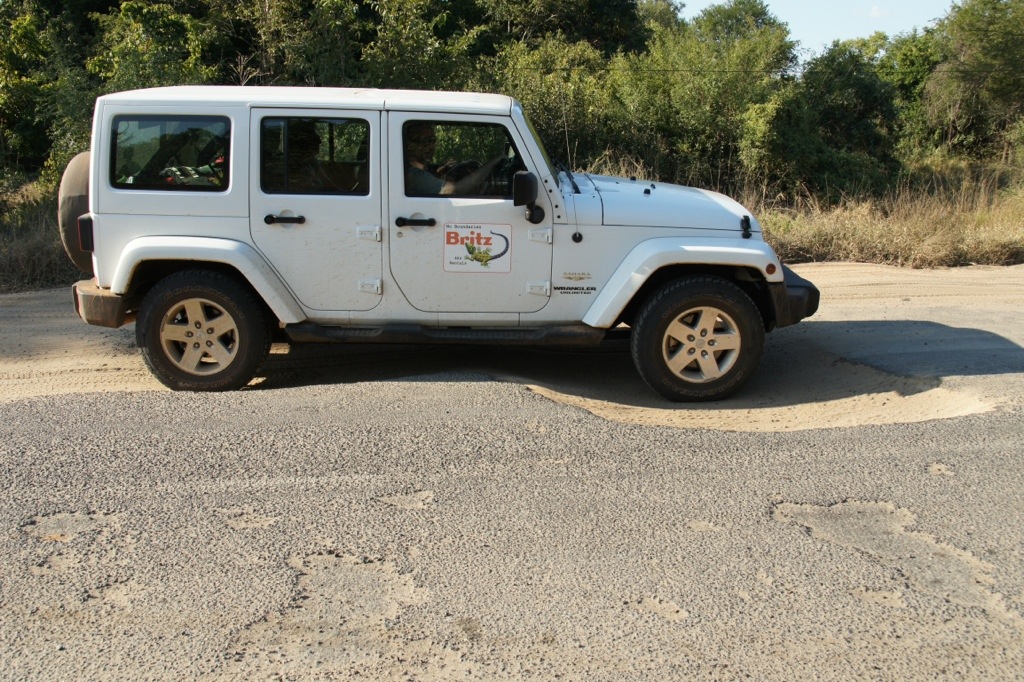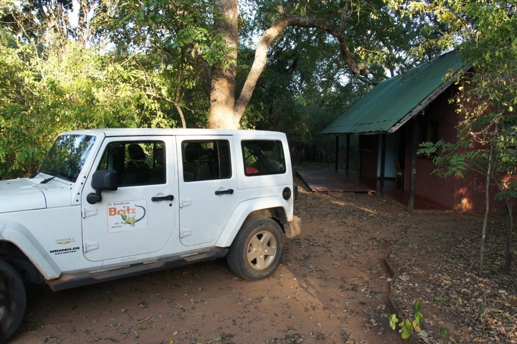 Unsere längste Etappe ist gemeistert … nach 630 Kilometer haben wir die M’phingwe Lodge in der Nähe des Sambesis erreicht, sogar noch bei Tageslicht. Unser früher Start um 7 Uhr hatte sich gelohnt, nach 8 Stunden strenger Fahrt bogen wir in den Busch und erreichten nach einem knappen Kilometer einen sehr angenehmen Ort.