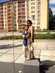 Fast hatten wir vergessen, wie grün die Stadt ist. Vieles hat sich in den letzten 20 Jahren, seid wir nicht mehr dort leben, verändert. Ganze Häuserzeilen fehlen. Es steht z.B. keines der Häuser mehr, in dem ich damals aufwuchs. Aber genauso oft erinnerten wir uns an Strassenecken, an Momente, bei denen Conny und ich bereits vor über 20 Jahren entlang spaziert sind – auf dem Weg zum Sport, in die Disco oder einfach so 😉 … Damals hatten wir natürlich noch keinen Blick für das architektonische Konzept und die Gestaltung dieser künstlichen Stadt. Heute überrascht uns das moderne klare Konzept. Die Gruppierung einzelner Wohnviertel um eine „Versorgungseinrichtung“ bestehend aus „Kaufhalle und Wohngebietsgaststätte“. Die Viertel sind quasi ein Museum der DDR-Architektur der 40 Jahre Ihres Bestehens. Erste, noch Stein auf Stein erichtete Häuser. Dann die ersten Hochhäuser aus standardisierten Betonplatten-Elementen bis hin zur wirklich hässlichen Platte, die Synonym für eine Vielzahl solcher „Arbeiterschliessfächer“ im Osten wurde. Dazwischen aber viel Grün, die Strassen führten aussen herum und wir konnten als Kinder sicher vor den Häusern spielen.
