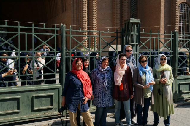 Einwenig Kontakt mit den sogenannten „Revolutionswächtern“* hatten wir auch bereits. (*sie kontrollieren die Einhaltung der strengen Regeln) wir wurden kritisch beobachtet: weil Christianes Kopftuch nicht den ganzen Nacken bedeckte oder wir uns spontan an den Händen hielten. Farshid konnte einmal schlichtend eingreifen, denn wir sind ja extra hierher gekommen, um uns ihr Land anzuschauen. Wir vergessen manchmal, dass es doch grössere Unterschiede gibt, als auf den ersten Blick sichtbar. Viele Regeln sind uns einfach zu fremd und unverständlich, zumal die extreme Geschlechter-Trennung zwar allgegenwärtig, aber dann wieder ad absurdum geführt wird. Beispiel gefällig? Auf dem Basar wird Damenunterwäsche ausschliesslich von Männern verkauft. Interessanterweise sind die Frauen hier zwar sehr den eigenartigen Kleidervorschriften unterworfen, geben sich aber keineswegs unterwürfig. Im Gegenteil, die meisten treten sehr selbstbewusst und stolz auf.