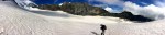 Gegen 11 Uhr erreichten wir den 3800 Meter hohen Gipfel des Fluchthorn und genossen den Blick zurück und auf unser nächstes Ziel am Sonntag – das Allalinhorn. Beim Abstieg ging unsere Seilschaft einen neuen Weg suchend voran. Für mich war es ein hinunterstürzen … deutlich zu schnell und immer wieder über den Schnee rutschend … die Anderen hatten ihren Spass und ich war froh, als wir wieder auf dem Gletscher ankamen.