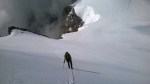 An einer abschüssigen Stelle übten wir noch das Gletscherspalten Retten, aber unsere Lernkurve flachte erheblich ab – langsam, aber zunehmend wurden wir alle müde und der Weg zur Hütte wurde in Angriff genommen. Auf dem Gletscher durften wir dann allerdings das geübte noch anwenden, da Thomas bis zum Bauch in einer der zahlreichen Gletscherspalten verschwunden war – selbstverständlich zogen wir Ihn heraus.