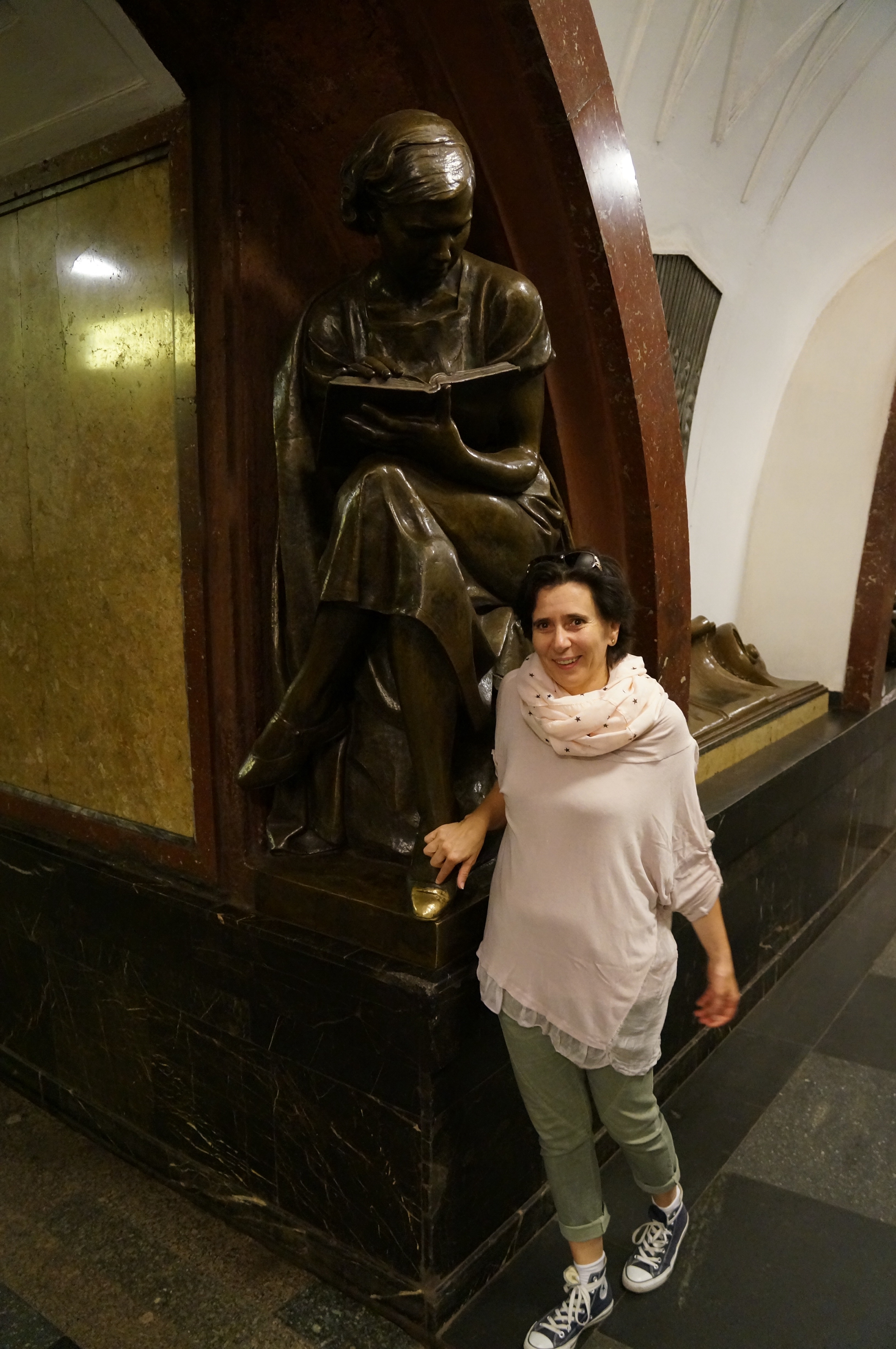 So machten wir uns auf in die Metro Moskaus. Mit insgesamt 46 kg Gepäck nicht ganz so einfach, da es keine Fahrstühle und nur ab und an abgeschrägte Treppen gibt. Dafür gefühlt kilometerlange Rolltreppen. Am Anfang klappte die Orientierung noch nicht so gut, wir brauchten noch unsere Zeit, um Stationen und Richtungen zu lesen. Mittlerweile sind wir schon besser, wir haben die Schublade „Russisch“ in unseren Köpfen wiedergefunden 😉