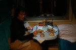 Die wechselnden Gäste lernt man natürlich noch weniger gut kennen und daher nur kurz die Schubladen, in die wir unsere Begleiter auf Zeit einsortiert haben: der russische Business-Man, der die gesamte Zeit an seinem Laptop (vermutlich) gearbeitet hat, der zwielichtige Typ, der nie aus seinem Abteil kam, die Matronin mit Ihrem Mann, die in einer Zugstunde zwei Flaschen Krimsekt geleert hatten und dann noch die zwei Chinesen, die rücksichtslos waren und unter ihren Synthetikanzügen einen genauso knisternden synthetischen Trainingsanzug tragen – für den Zug, beim Aussteigen wurde dann einfach der Anzug wieder darüber gezogen. Man ist recht dicht beieinander hier …
