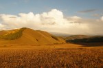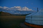 Muss man aktiv hier sein? Meist reicht es mit dem einfachen Holzschemel vor der Jurte zu sitzen und den Landschaftskanal in Superbreitwand und 3D zu sehen. Die Wolken sorgen für Dramatik am Himmel und ständige Farbwechsel im Tal und den Hängen. Unsere Umgebung wirkt wie ein hochalpines Tal bei uns zu Hause, etwas breiter und länger und unser Bergbach ist hier ein richtiger Fluss. Die Normaden Familie unterhalb unseres Plataus lebt in diesem Tal mit ihren Viehherden. Ihre Jurten wandern bis zu 12 mal im Jahr durchs Tal. Im Umkreis von ca. 20 Kilometer finden sie ihre Sommerquartiere näher am Fluss und den Platz zum Überwintern windgeschützter an einem der nach Süden ausgerichteten Berghänge. Erfährt man alles wenn man doch aktiv wird und mit einem Führer der mongolisch-englisch übersetzen kann die Familie besucht.