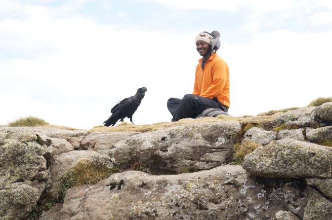 Die erste Nacht verbringen wir im Sankaber Camp auf 3200 Metern. Neben unserem Scout sind mit uns unterwegs, Banti unser junger, sehr guter Führer, ein Koch und sein Hilfskoch. Der Tag beginnt um 7Uhr mit dem lauten Klappern von Töpfen und Schüsseln in der Hütte unserer Begleiter. Auf einem Gaskocher wird Wasser für Kaffee und unsere Morgenkatzenwäsche gewärmt. Der äthiopische Tag beginnt mit dem Sonnenaufgang. Nach äthiopischer Zeitmessung ist dies 1 Uhr und der Tag endet genau 12 Stunden später mit dem Sonnenuntergang … Fast unveränderlich über das ganze Jahr.