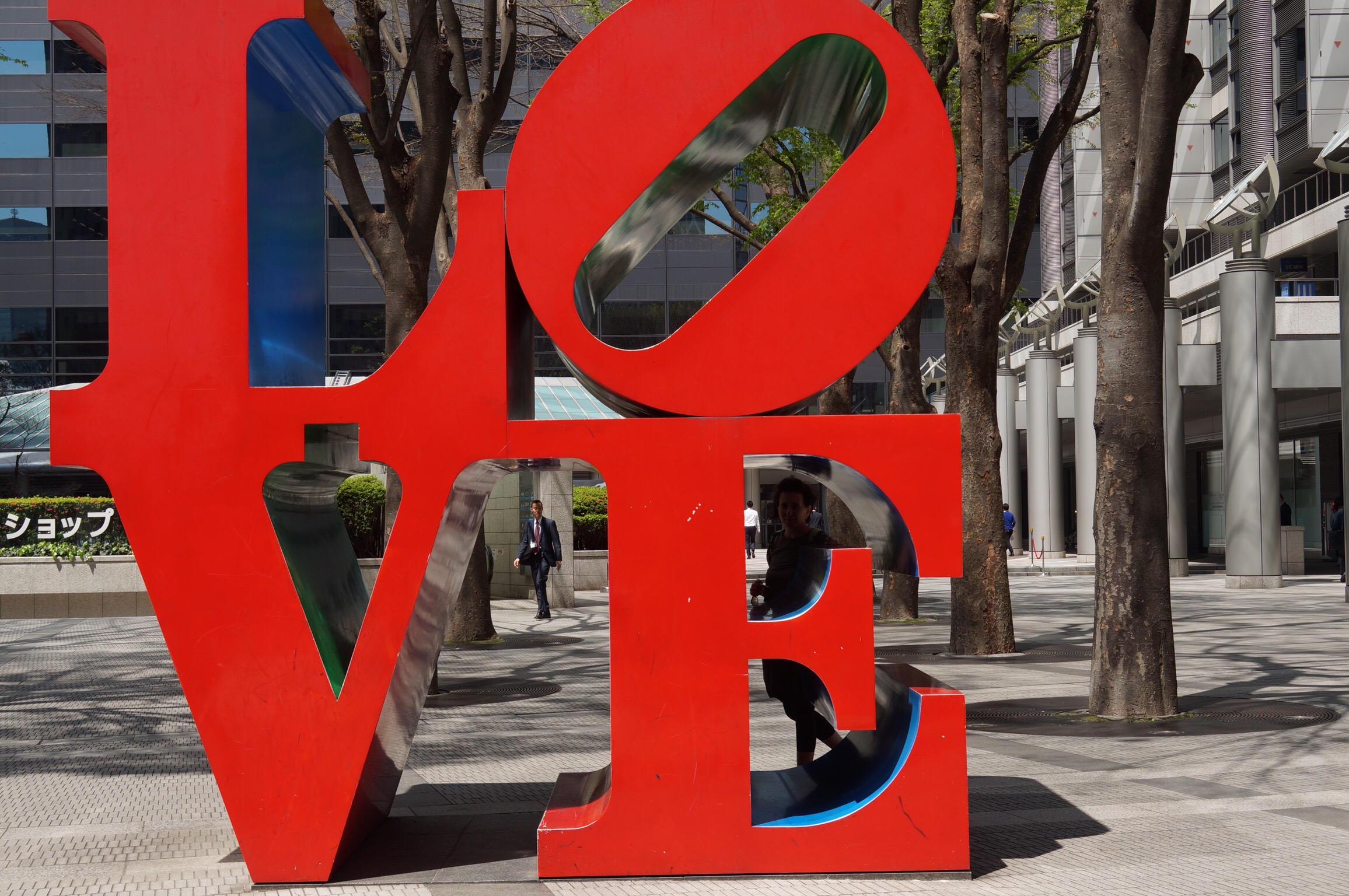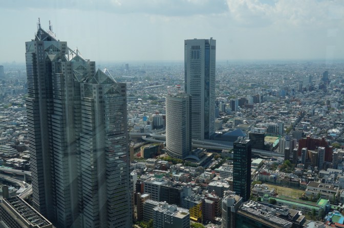 Über Shinjuku strahlt die Sonne zwischen den Wolkenkratzern hindurch. Über dem Bahnhof befindet sich ein gigantischer Shopping Tempel mit über 10 Stockwerken. Aber Shopping ist nicht unser Ziel. Wir wollen hoch hinaus und den Fuji sehen. Dafür bietet sich das Tokyoter Rathaus an. Rathaus trifft es nicht richtig. Der 50 stöckige Wolkenkratzer mit zwei Türmen und grossen umfassenden Ringbauten beherbergt die Regionalverwaltung für die Metropolenregion Tokyo mit doch rund 34 Millionen Einwohnern. Das wäre Schweiz+Belgien+Niederlande+Dänemark zusammen… Beide Türme haben 202 Meter über dem Grund jeweils ein Aussichtsdeck, auf welche man kostenlos mit einem Expresslift in 50 Sekunden düsen kann. Wir haben uns für den südlichen der beiden Türme entschieden. Der Ausblick von oben ist grandios und das Ausmass dieser Riesenstadt kaum erfassbar. Bebaute Fläche bis zum Horizont, an welchem grad noch so erkennbar im Dunst der weisse Gipfel des Fuji mehr zu erahnen als wirklich zu sehen ist. Um uns herum streben die Gebäude nach oben und unmittelbar vor uns reckt sich das Park Hyatt in den Himmel. Am Ende unserer Reise werden Conny und ich hier für eine Nacht, den uns zu dieser Reise inspirierenden Film „Lost in translation“ nachspüren.