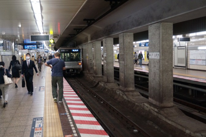 Dafür verstehen wir die Tokyoter Metro. Einen Fahrschein aus dem Automaten mit dem entsprechenden Geldwert der zu fahrenden Route zu ziehen ist inzwischen normal und stresst nicht. Wir haben das Glück an einem Endbahnhof in die Metro zu steigen, so dass sich die Bahn erst allmählich bis zur Belastungsgrenze füllt. Ab der Stadtmitte drücken und pressen sich die Anzugträger mit aller Gewalt noch in den Wagen. Doch die Tokyoter U-Bahn ist ein effizientes Transportmittel. Die Bahnen verkehren in sehr kurzen Takten (ca. alle 2 Minuten startet eine neue Bahn) und das Ein- und Aussteigen verläuft sehr effektiv. Praktischerweise befinden sich auf dem Boden der Bahnsteige Markierungen, wo die Türen des Metrowagens zum Halten kommen. Genau an der entsprechenden Markierung stoppt der Wagen, die Passagiere im Inneren des Wagons steigen ungehindert aus. Geordnet stehen die wartenden Passagiere in einer Schlange und schieben sich dann in die U-Bahn hinein. Mit dem Erklingen einer Melodie schliessen die Türen und die Bahn setzt sich in Bewegung. Genauso geordnet geht es an unserem Endziel, z.B. am grossen Knotenpunkt Shinjuku die Treppen wieder ans Tageslicht nach oben … Linksverkehr, zumindest meistens, auch auf den Treppen und nicht nur im Strassenverkehr. Gehirnjogging für unterwegs :o)