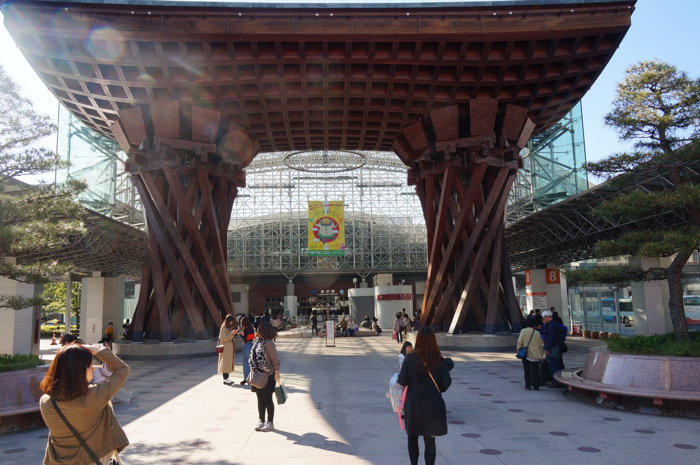 Also machten wir uns wieder auf den Weg. Unser nächstes Ziel hieß Kanazawa. Die Reise mit dem Shinkanen ist sehr entspannt. Die Landschaft fliegt am Fenster vorbei – bei ca. 380 km/h hat man kaum Zeit, Details aufzunehmen. Ausserdem werden die Bilder immer wieder durch längere Tunnelabschnitte und Schallschutzwände unterbrochen. Aber die herrliche Blütenpracht erkennt man überall!