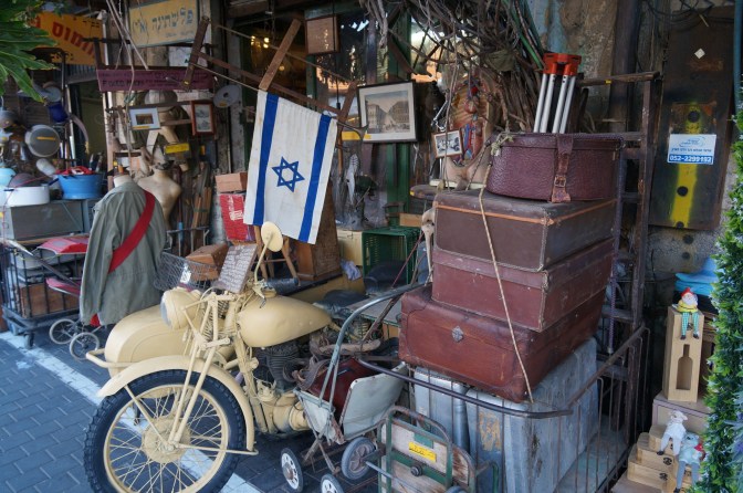 Nachdem wir uns den Sand des Strandes von den Füssen geklopft hatten, stiegen wir die Treppen zur Altstadt von Jaffa hinauf. Von oben bietet sich ein feiner Ausblick auf die historischen Gebäude des alten ottomanischen Hafenort Jaffa und die moderne Skyline von Tel Aviv. Der Flohmarkt bietet vieles. Altes, Angerostetes und zum Beispiel toll restaurierte Filmscheinwerfer. Leider etwas unpraktisch zum Transportieren, ansonsten hätte das Teil ausgezeichnet in unser Wohnzimmer gepasst 🙂. Der Stadtteil Jaffa bietet Kirchturmspitzen neben Minaretten, enge Gassen und den Geruch von Fisch in der Nase. Wir durften einen der besten Hummus im Abu Hassan essen und uns an Jaffa Orangen erinnern.