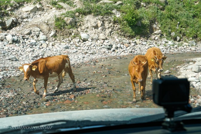 Es klappert und rumpelt beständig, rhythmisch wiederkehrend. Deng, Deng, Deng, Deng! Klingt gar nicht gut und das Plateau des Passes ist noch längst nicht erreicht. Irgendein mechanisches Teil auf der linken Fahrerseite unseres Allrads macht Krach und das sollte so nicht sein. Aufgefallen war uns dieses Rumpeln schon auf der Fahrt nach Batumi. Aber mit unserem „grossen“ Automechaniker Wissen haben wir uns dafür entschieden, dass erst ignorieren und dann dem Auto eine Ruhepause gönnen bestimmt hilft. Half aber nicht 😳