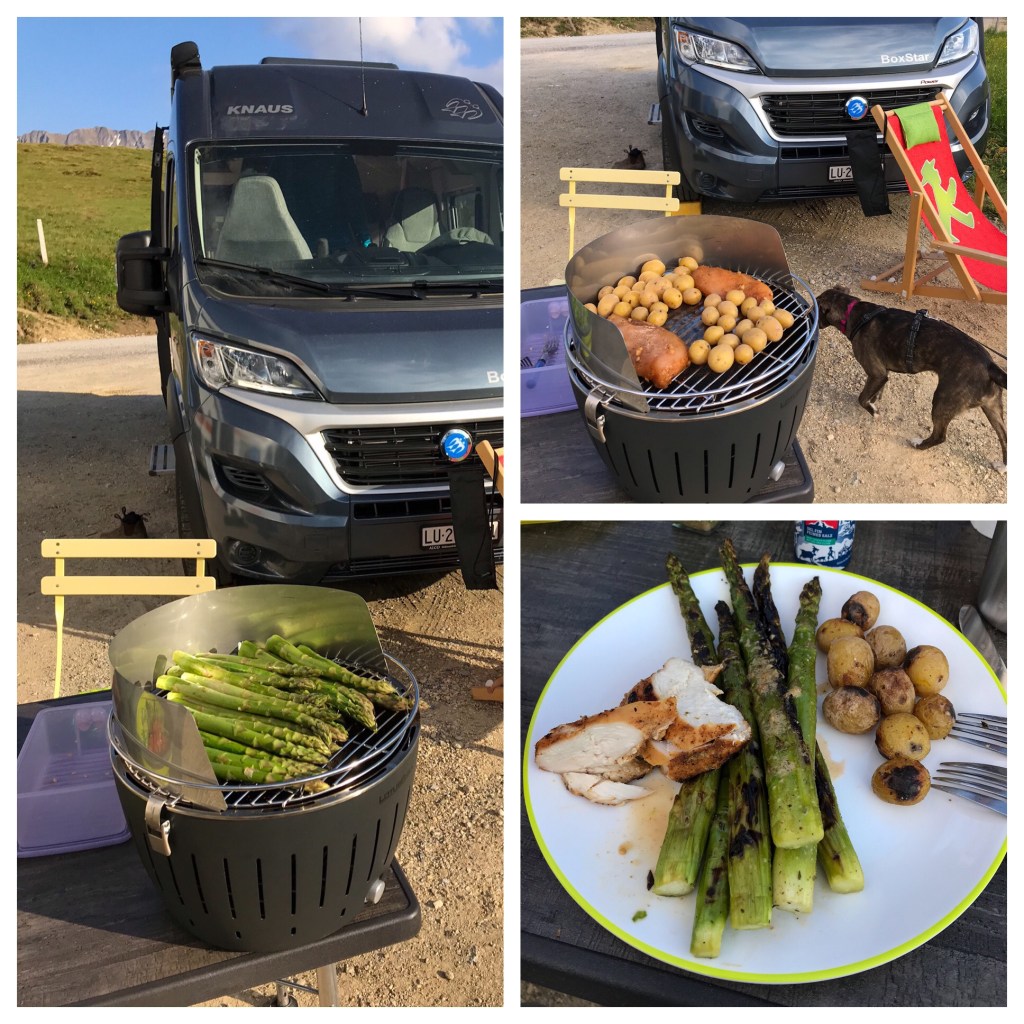 Noch zum #camperlife … „Learning“ des Tages … die Dusche ist erfrischend kühl! Das Aufheizen des Wassers braucht etwas Zeit: 🙂 … Aber das Bett ist erstaunlich bequem und nach einem ganzen Tag an der frischen Luft schmeckt das Dinner aus unserer Bordküche und vom Grill fabelhaft.
