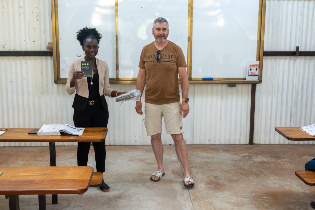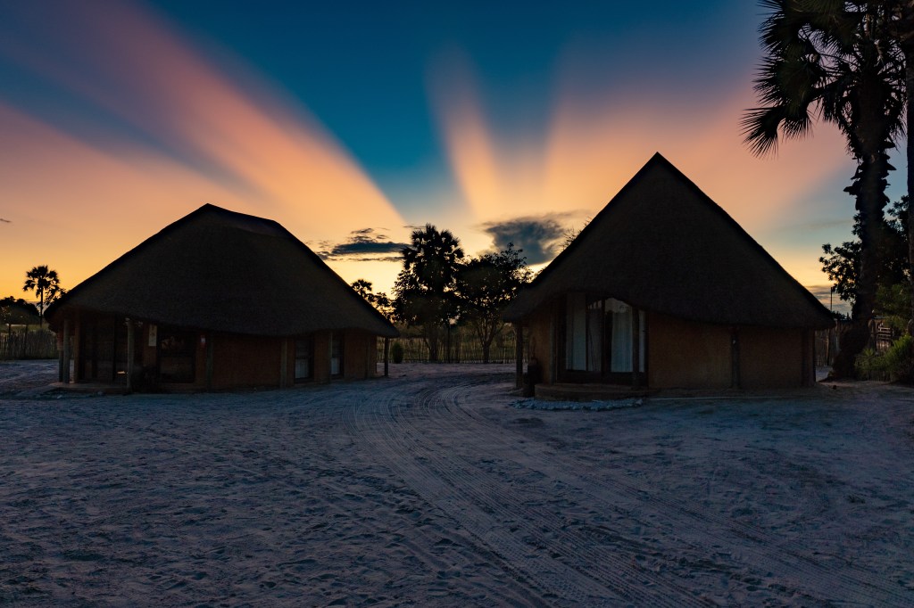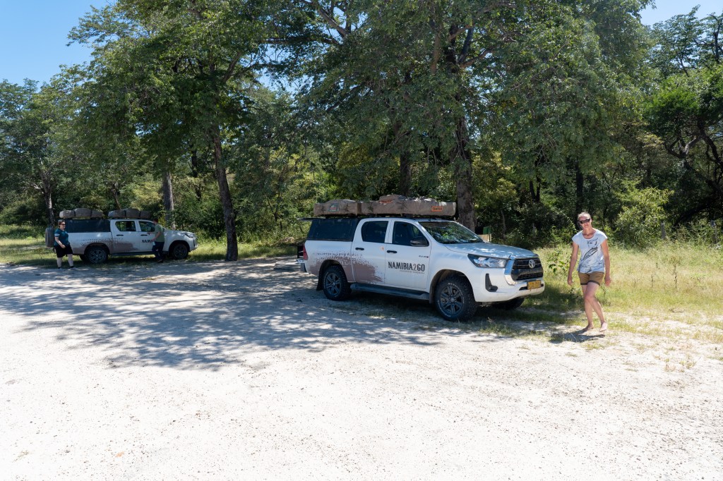 Das Land ist flach und grün und Siedlung folgt auf Siedlung. Wir stoppen auf einem kleinen Markt und entscheiden uns gegen die angebotenen Mapone Würmer und für den Trockenfisch. Dann biegen wir von der geteerten Hauptstrasse ab und fahren auf der Sandpiste bis in die Siedlung Ongula. Hier hat die Dorfbevölkerung die Initiative ergriffen und ein selbstverwaltetes Camp mit 4 Bungalows und 2 Camper Stellplätzen erstellt. Wir sind sofort begeistert. Der Empfang ist sehr freundlich und warmherzig. Das Camp liegt mitten im Dorf und das Hauptgebäude ist sehr ansprechend eingerichtet (viel Recycling und regionale Materialien). Während wir unsere Jeeps auf den einfachen Stellplätzen versorgen und die Zelte aufrichten, entscheiden wir uns spontan, nicht selbst zu kochen, sondern das angebotene regionale Dinner zu geniessen.