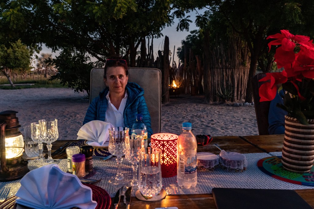 Im dunklen rollt noch ein Jeep auf die Campsite … das deutsche Paar sieht echt geschafft aus und natürlich führen wir unser obligatorisches Reisende-Austausch-Gespräch (woher – wohin). Das „Woher“ kennen wir … die Epupa Falls. Allerdings haben sich die beiden für den Weg der Kunene entlang entschieden und bereuten es. 10 Stunden harte Fahrt inklusive Festfressen im Schlamm und Freischaufeln … war eine gute Entscheidung von uns nicht der Kunene zu folgen 😉 …