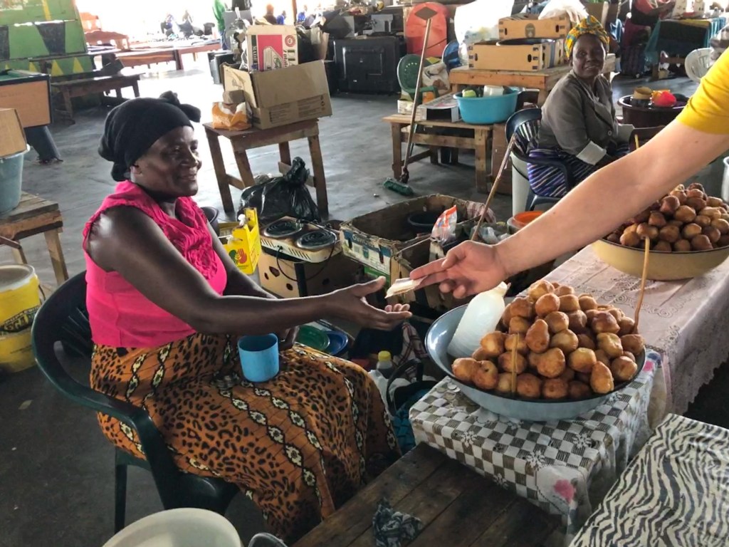 Wir besuchen mit der Grenzstadt Rundu die zweitgrösste Stadt Namibias, füllen unsere Vorräte auf und schlendern über den Freiluft Markt. Dort probieren wir frisch frittierte Maniokbällchen mit einer Honig Sosse und zuckersüssen Tee mit Milch bei einer der Damen mit ihren mobilen Garküchen.