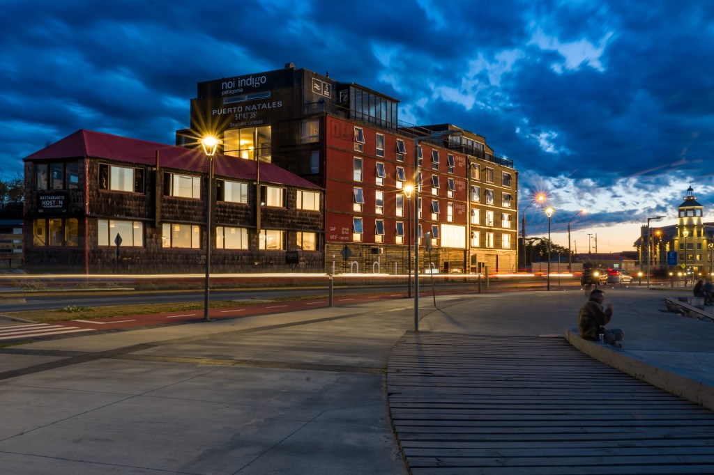 240 Kilometer führt die Ruta 9 fast schnurgerade durch eine wellige, baumlose Landschaft noch Puerto Natales. Unterwegs sehen wir die ersten Guanacos (das Ur-Lama 🥸) am Strassenrand in der Pampa grasen. Keine Bäume, keine Siedlung weit und breit … vermutlich ein unwirtliches Land, wenn nicht dieses Ausnahme Sommer Wetter gerade herrscht. Je näher wir der Stadt kommen, um so mehr erheben sich die Berge links und rechts der Strasse. Nach einer letzten Kurve taucht recht plötzlich wieder das glitzernde Meer auf. Puerto Natales liegt an einem schmalen Fjord, einem Ausläufer der Magellanstrasse, der sich tief ins Landesinnere schlängelt. Die Häuser der Stadt sind klein, blechverkleidet und meist bunt gestrichen. Für ein maritimes Flair sorgen die wenigen, kleinen bunten Fischerboote in der Bucht. Wirkliche touristische Highlights bietet die Stadt keine … sie ist Durchgangsstadion für uns Touristen und unzählige Backpacker auf dem Weg in den „Torres del Paine“ Nationalpark. Dementsprechend gibt es einen grossen Supermarkt (für die letzten Vorräte), einen Outdoor Kleidungsshop und einige kleine Kaffeeläden plus nette Restaurants im Ort. Sehenswert ist die den Strand überragende Skulptur. Ein Frauen- und ein Männertorso, im Sprung mit gespannten Körper vom Künstler eingefroren, ergeben einen wunderbaren Bildvordergrund gegen den blau schimmernden Fjord und die dahinter aufragenden schneebedeckten Berge. Die Berge, in die wir nun auch wollen …