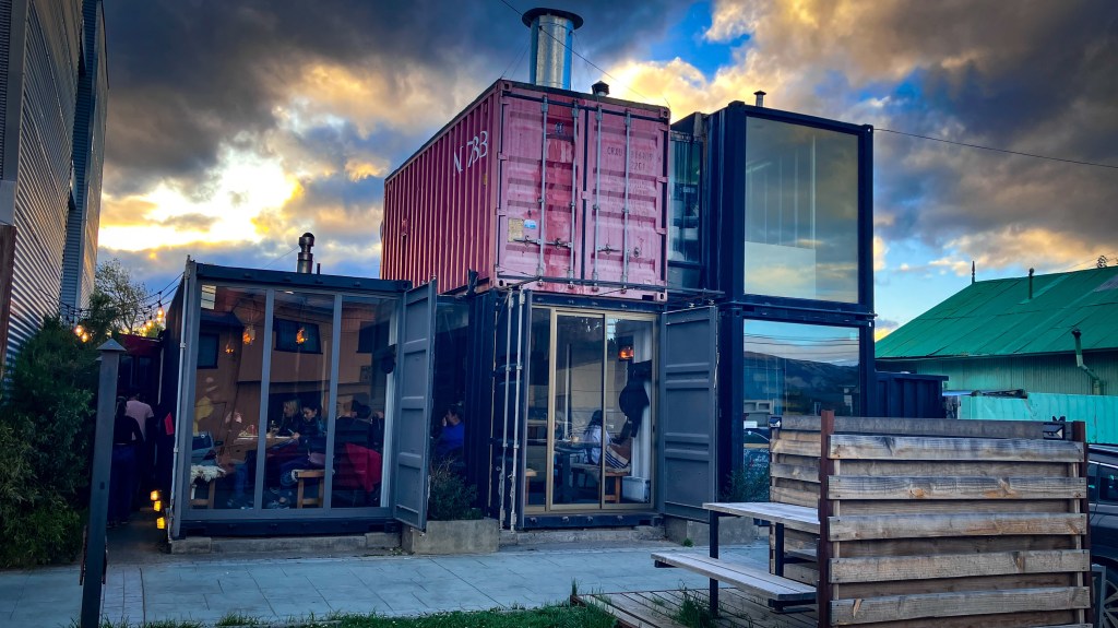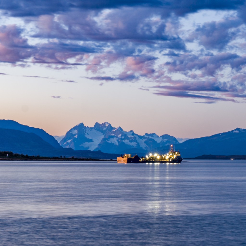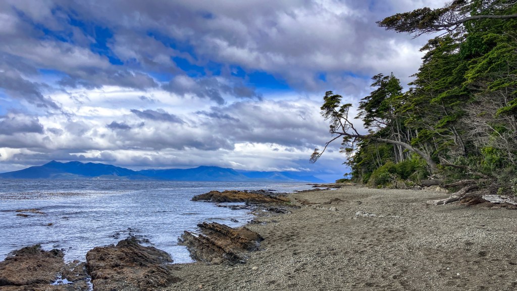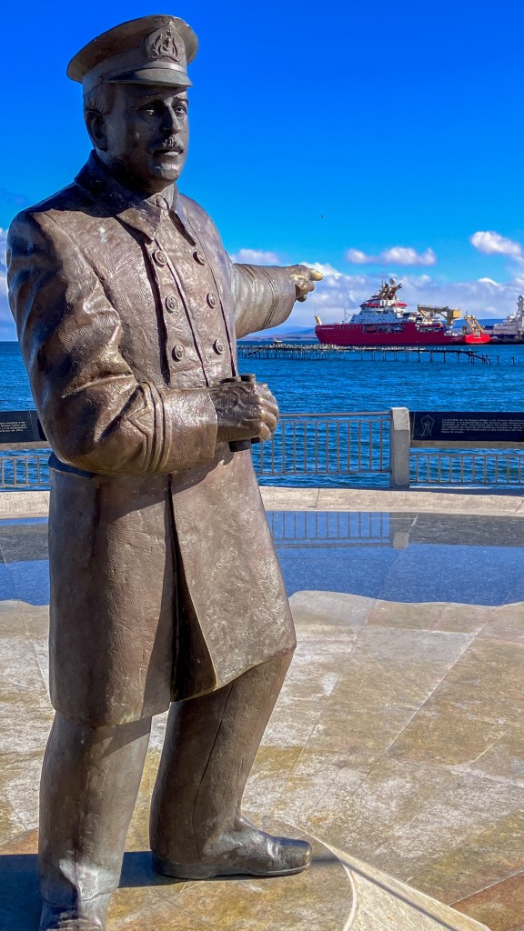 Wir wandern die Strandpromenade entlang und schauen zu den grossen Schiffen auf der Meeresstrasse. Kreuzfahrtschiffe steuern den Hafen an und an der Mole liegt ein riesiger Eisbrecher mit einem wuchtigen, knallrot gestrichenen Bug. Bis zur Antarktis sind es von hier nur noch 1000 stürmische Kilometer durch die Drake Passage hindurch.