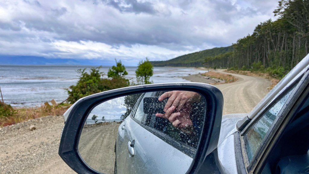Stürmisch wird es auch an unserem zweiten Tag in der Stadt. Am Himmel spielen sich eindrückliche Szenen ab. Graue Wolken reissen auf, erst ein Regenbogen, dann zeigen sich hellblaue Flecken am Himmel nur um Minuten später wieder dicke Regentropfen auf uns nieder regnen zu lassen … beständig ist nur der starke und kalte Wind. Wir nutzen die Zeit um noch etwas südlicher zu gelangen, fahren auf der Ruta 9 so lange, bis es wirklich nicht mehr weiter geht. Zuerst noch auf einer gut geteerten Strasse, dann wird es eine rissige Betonstrasse die von einer Schotterpiste abgelöst wird. Der Pfad wird immer schmaler und verläuft stellenweise unmittelbar am Strand entlang. Und dann kommt das Schild „PARE“ (Stopp) und eine Schranke versperrt die Weiterfahrt … „Fin del Mundo“! Weiter geht nur noch zu Fuss über den schmalen, steinigen Strand. Rechts neben uns zieht sich ein grünes Dickicht den Berghang hinauf … links rollen die Meereswellen gegen den Strand. Der Wind blässt uns die Gischt ins Gesicht und wir haben ein Ziel unserer Reise erreicht … wir stehen wieder einmal an einem der Ränder unserer Welt.