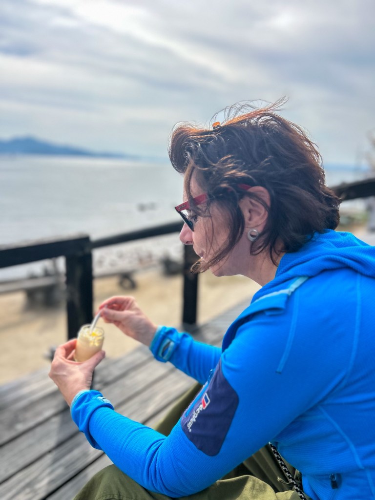 Die Nacht in unserem kleinen Zimmer ist kalt und vor lauter Niesen und Husten komme ich leider nicht zum schlafen. Eigentlich wollten wir noch 2 weitere Nächte hier in den Bergen an der Küste bleiben. Aber der Wetterbericht prognostiziert für die nächsten Tage echtes Herbstwetter mit tiefen Temperaturen und Regen. Ich brauche eine Badewanne mit viel heissem Wasser und einen warmen Platz zum Schlafen. Also planen wir um und fahren zurück nach Fukuoka in ein kleines, feines Stadthotel. Wir bedauern das, sind aber froh um die schönen Eindrücke des ersten Abends.